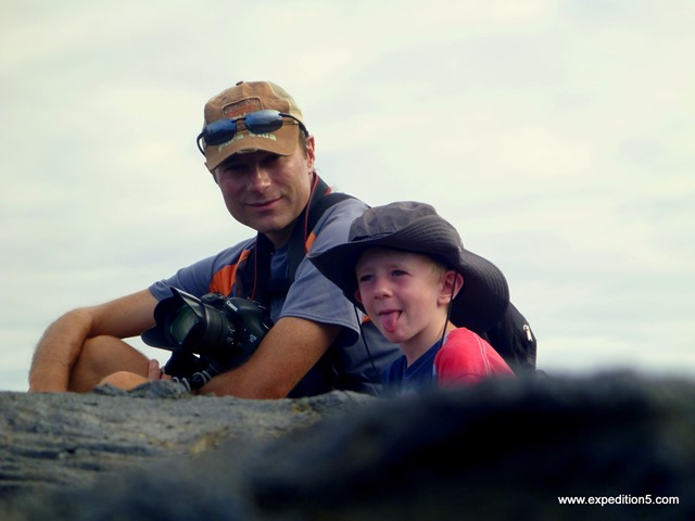 Nous passons le dernier jour à la baie Sullivan, sur l’île James. Cette île est une des plus jeunes de l’archipel, elle n’a donc pas encore été recouverte de poussières, puis de terre, puis de végétation : ici c’est la lave séchée à l’état pur. On dirait qu’elle s’est figée la veille, en laissant derrière elle des motifs variés très photogéniques.